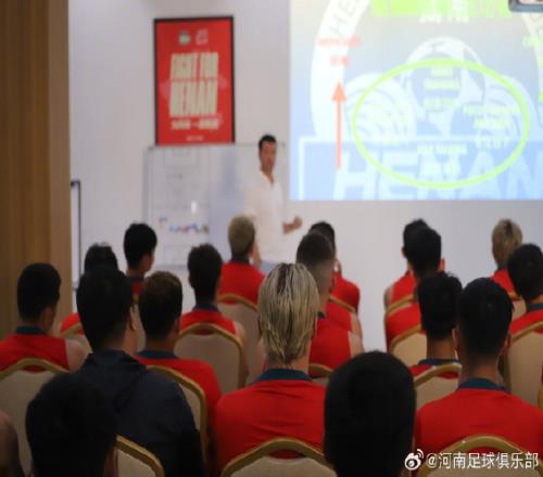 ![]() 一线队召开内部会议 加强制度管理与心理建设 6月12日下午,河南俱乐部酒祖杜康一线队在中牟足球训练基地召开内部管理会议,包括体育总监贝拉在内的一线队全体成员以及俱乐部相关工作人员参加。 体育总监贝拉在会议上强调,一线队全体成员要深刻体会正直、尊重、敬业、责任、协作五个核心要素在内的河南足球俱乐部核心价值观。球队要按照制定好的纪律管理条例严格遵守相关考勤与请假制度,从上到下加强内宿与外宿管理、媒体与社交管理、市场与商务管理等。随后,一线队全体人员和相关工作人员在球队内部管理制度文件上签字确认。 本次会议除了加强内部管理,体育总监贝拉还进行了本赛季第二期的球员心理培训辅导,目的是为了应对6月份密集赛程下可能出现的各种困难,意在让球员在精神层面树立起强大的信心,做好迎接困难的心理准备。 王上源、周缘德归队,其他伤员陆续恢复训练的情况下,球队将以较为齐整的人员储备迎接双线作战。体育总监贝拉和主教练拉莫斯强调,除了日常训练之外,球员们更要在心理层面提升自信、加强团结,以积极乐观、顽强勇敢的精神面貌去攻克难关,为俱乐部股东、赞助商和支持球队的广大球迷们争取更好的成绩。